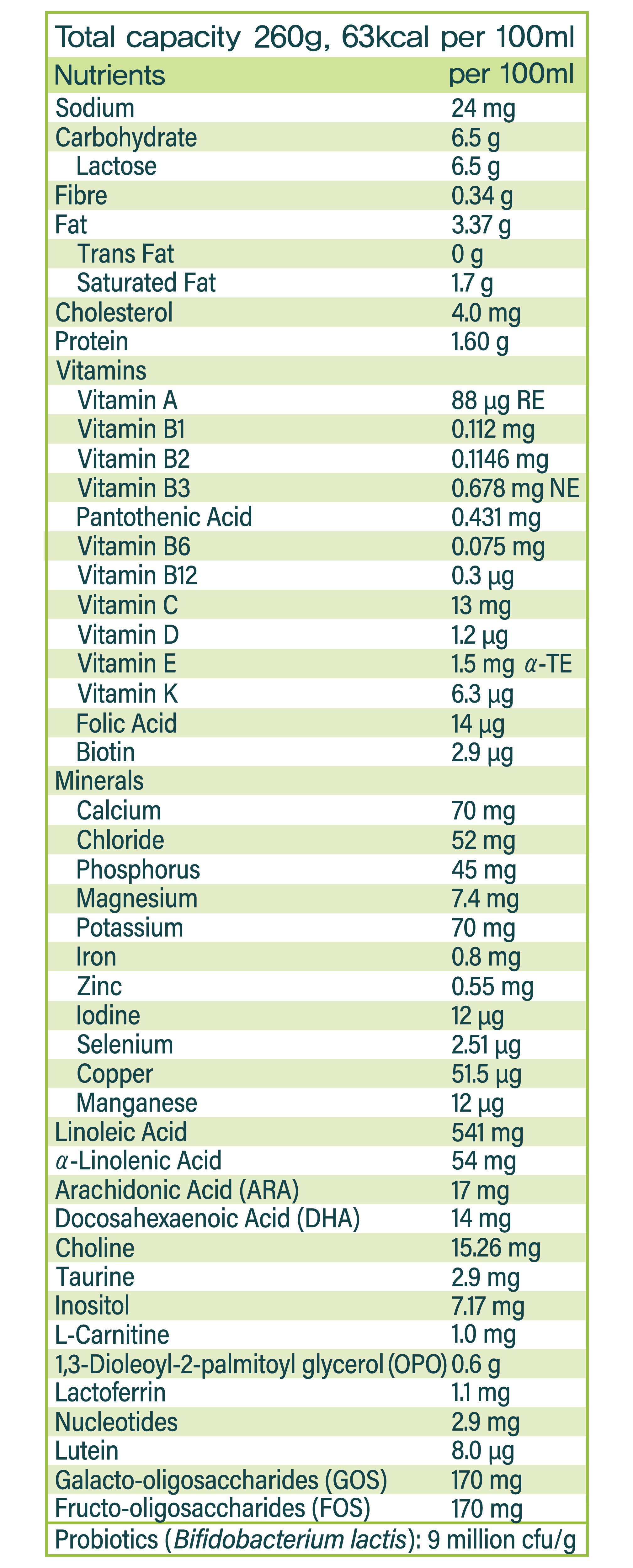 - Ngoài việc cung cấp đầy đủ và đa dạng các dưỡng chất, thì tỉ lệ giữa các chất trong công thức được nghiên cứu tỉ mỉ để đáp ứng với từng độ tuổi của trẻ, ví dụ tỉ lệ giữa whey/casein là 6:4 (trẻ từ 0-6 tháng), 4,4:5,6 (trẻ từ 6-12 tháng) và 4:6 (trẻ từ 1-3 tuổi).